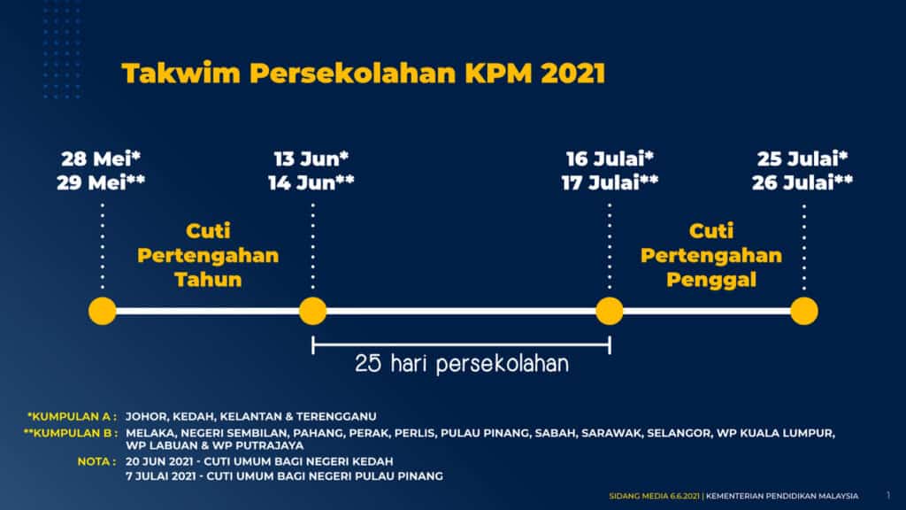 2. Cuti pertengahan penggal pula bermula 17 Julai hingga 25 Julai 2021.